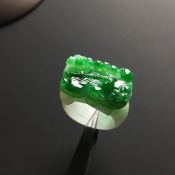 冰糯种阳绿貔貅扳指 翡翠戒指 内径19 宽12 壁厚4毫米