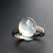 冰种蓝水 缅甸天然翡翠戒指大小14*11.6*6mm