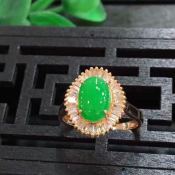 高冰近玻璃种正阳绿 缅甸天然翡翠戒指