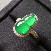 高冰阳绿纯净葫芦女戒 翡翠戒指 13*7.6*4--15.4*9.7*7.3