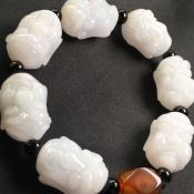 糯冰种三彩灵猴翡翠手串