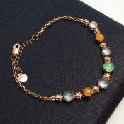 冰种三彩翡翠手链 18K金镶嵌