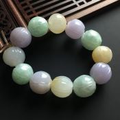 糯冰三彩莲子翡翠手链 直径15mm