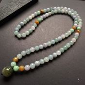糯冰种多彩翡翠转运珠项链