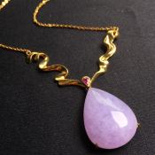 冰紫蛋水滴形翡翠项链