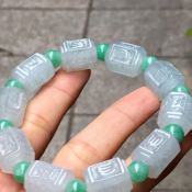 老坑冰种俏色 六字真言翡翠手链