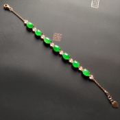 18k玫瑰金真钻镶嵌 冰种阳绿翡翠手链