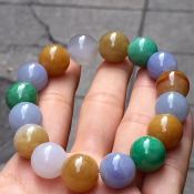 老坑冰糯种三彩色翡翠手链