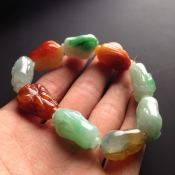 巧雕多彩百财翡翠手链 单颗尺寸23-18-12毫米