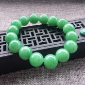 老坑料冰糯种 满豆绿大圆珠翡翠手链