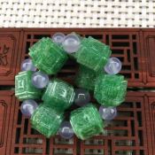 A货翡翠 冰糯种满绿 六字箴言路路通手链