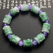 糯冰晴底六字箴言翡翠手链 单个14-11mm