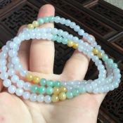 糯冰三彩佛珠翡翠项链 108颗 佛珠直径7mm