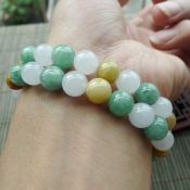 好种三彩手翡翠珠链 珠大8总23颗