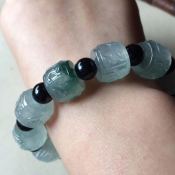 巧雕多彩罗汉翡翠手链 单颗尺寸24-16-15毫米