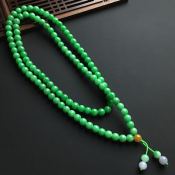 糯冰种阳绿翡翠佛珠项链 共108颗