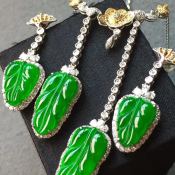 高冰阳绿叶子项链加耳坠 整体35.2*13*6.8