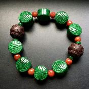 相对于翡翠手镯,翡翠手串没有那么常见,但