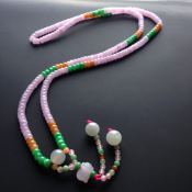 糯冰种三彩翡翠项链 224颗 单颗尺寸5-3mm