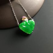 18k白金真钻镶嵌 冰种阳绿福禄翡翠项链