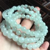 相对于翡翠手镯,翡翠手串没有那么常见,但