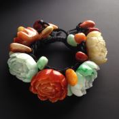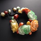 巧雕多彩 花开富贵翡翠手链 单颗尺寸27-21-10mm