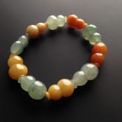 糯冰种多彩福禄翡翠手链 单颗尺寸17-10-7mm