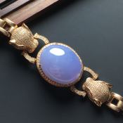 冰种阳绿蛋面翡翠手环 真金真钻镶嵌