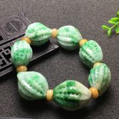 糯冰飘绿男装核桃翡翠手串