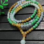 冰地三彩料翡翠珠链 珠子5.4*5.4mm左右