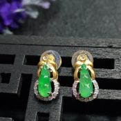 冰满绿 翡翠耳钉11.0*6.3*4.2mm