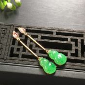 一对阳绿 葫芦翡翠耳坠45.8*14.5*8.8*4.2mm