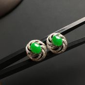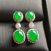 冰种正阳绿 翡翠耳坠 豪华镶嵌
