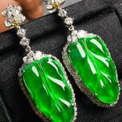 冰帝王绿 翡翠耳坠 28.3*9.3*3