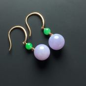 糯化种双彩佛珠翡翠耳坠 色泽鲜艳