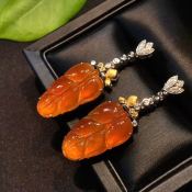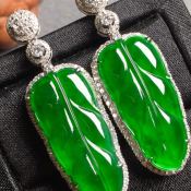 高冰红翡树叶翡翠耳环20*11.8*5.4