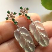 冰糯种满色 翡翠耳钉 16.7*8.6*3.2mm