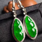 冰糯种满绿 翡翠耳坠83.6*12.9*6.8mm