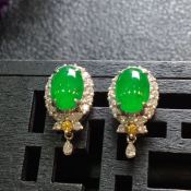 冰满绿 翡翠耳钉17.6*9.4*8.8*裸石8.2*5.9*3.3mm