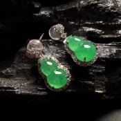 冰种高色满绿葫芦耳钉