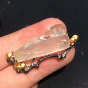 白色高冰种 安居乐业翡翠吊坠胸针两用