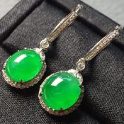 冰种阳绿 圆蛋翡翠耳坠40.8*9.9*6.5mm
