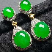 冰种满绿 翡翠耳坠37.5*11.3*7.4