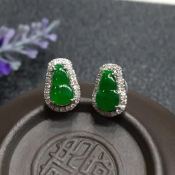 冰种满绿豪华镶嵌翡翠耳坠