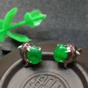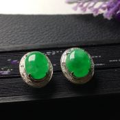 冰满绿 翡翠耳钉7.4*6.7*4.6mm