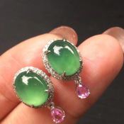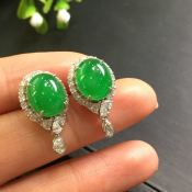 冰阳绿 翡翠耳坠 18k金豪华镶嵌