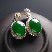 冰种阳绿 翡翠耳坠 14-12-4毫米