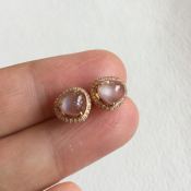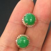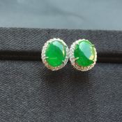 冰糯种阳绿 翡翠耳钉 18K南非真钻镶嵌