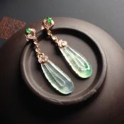 冰种带色 翡翠耳坠 连金尺寸21-8-4毫米