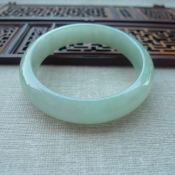 翡翠手镯A货 57.4圈口糯冰水绿福镯